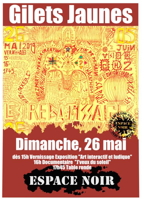 The 2019 gatherings will start on May 26th and will go on until at least June 12th. Agenda: (français/english) 26th May - 5th June:Interactive Art exposition, Espace NoirDJTAL: Artiste Gilet Jaune RAMA: Hackactiviste et principal créateur de la webapp DelDj Venez participer à la création de l’art d'aujourd'hui, ainsi qu'à la politique de demain! Et si l'expérience de l'artiste dessinateur ou du peintre en apparence si solitaire pouvait devenir non seulement collaborative, participative mais aussi accessible à toutes et à tous de façon immédiate et simple. La puissance du "beau", du mystique, du tribal... bref l'expérience de la machine ludique interactive: le Totémizateur. Ce dernier, une création de peinture vidéo trippante conçu par Djtal Humain, vous donnera un autre regard sur les métiers de l'Art Destinatoire, en sachant capter vos compétences, vos dispositions ou prédispositions à l'expression audiovisuelle. Par de simples tracés dans le sable et la reconnexion avec l'un des plus ancestrales gestes d'écriture humain sublimé par la puissance de calcul d'un ordinateur et une playlist électro de bonne facture, un nouveau paradigme de la créativité peut s'ouvrir à vous: un voyage au cœur d'une esthétique en constante mutation. Aussi dans un autre volet de l'exposition vous pourrez découvrir le travail destinatoire-papier du Digital Humain frère djumeau du Djtal, dont le geste consiste à fusionner divers langues en mode “lego". Dans une forme graphique absolument subréaliste les mots, les lettres, les symboles occupent et colorent l'espace de la feuille. Tout cela afin de concevoir une langue géopoétik capable de rivaliser avec la Novlangue Technocratik du moment (le Désespéranto!?). Un nouvel armement sémiologik, syntaxik, conceptuel est possible et nécessaire ou vital. Vous pourrez peut être participer directement ou indirectement au projet néopolitik du Décapitalisme Articulturel lancé en 2018-2019 au cœur du mouvement des Gilets Jaunes et découvrir sa dimension astroéconomik avec les premières pages du manuscrit oridjnal du Livre Jaune de Tetsuo Nakamoto - petit frère caché de Satoshi Nakamoto - engagé dans la lutte finale aux côtés du Grand Jaujaune et découvrir le système monétaire officiel complet papier des GJ : les Billets Jaunes évidemment convertibles en Djtos. Découvrez également la webapp DelDj, afin d’unir la création visuelle avec la création musicale et parfaire cette expérience synergique. 26th May:Vernissage: Interactive Art exposition, 15:00, Espace NoirDocumentaire J'veux du soleil, 16:00, Espace Noir Table ronde et discussion au sujet du mouvement des Gilets Jaunes, 17:45, Espace Noir 27th May:Tools for a self-empowered culture, 10:00-19:00, Décentrale28th to 30th May:Building Fair Circular Economy, DécentraleHow do we best extend and curate the web of trust that is the market participants of the fair economy. What are preconditions to be considered "fair", which are the merchants that we know to be fair accordingly and which economic links can we manifest between them.https://fair.coop/principles/ Glocal Governance Model - Case in point: FairCoop, DécentraleIn this workshop we will be looking of ways to apply glocal governance models to the needs and circumstances of the FairCoop community. FairCoop's focus isn't governance but the development of a global grassroots fair economy. As it aims to achieve its goal, it however needs to build the corresponding governance structures. We want to see how the models we develop can help in this context and how this practical example can help develop our models.https://fair.coop FairCoin ecosystem and Fairo exchange rate review gathering, DécentraleWe aim to review the concept of exchange rates between the "Fairo" purchasing power peg, FairCoin and other currencies. The Fairo is intended to be a reference point for purchasing power value in the emerging fair economy. We are defining an ecosystem of consensus based exchange rates in a web-of-trust, creating dynamics for a Nash Equilibrium for a cooperative, fair economy. We'll discuss and further develop the proposal of using this reference point and aim to agree on a first consensus rate.http://fairo.exchange 31st May – 9th June:Hackathon at the DécentraleWe meet to discuss the current status of different tools in the FairCoop ecosystem, how to improve these tools and to work together on progress with these developments. The program will be adapted to the participants and their skills. We will organize together the daily schedules, which will not only include the working program but also food shopping, preparing meals, cleaning and social activities. Participants will be discussing and working on task ranging from system administration to the various software stacks of the FairCoop ecosystem, covering different levels of experience and programming languages, graphics work and conceptual discussions of use cases.08:30-10:00 Breakfast NB: This timeline serves as guideline. Participants are welcome to leave earlier to join activities happening at Espace Noir. 4th June:Video conference with @jytoumit from Duniter on theoretical aspects of the currency, 10:00, Décentrale"Duniter is a cryptocurrency software, which means it is a software providing the ability to create currencies. Duniter is different from other cryptocurrency softwares you may know (Bitcoin, Litecoin, Peercoin, ...) for 2 main reasons : its currency code includes the concepts of a Universal Dividend and Web of Trust; but also its Blockchain code, which is far more energy efficient, getting rid of the massive waste of energy introduced by Bitcoin." https://duniter.org/en/introduction/ 5th JuneVideo conference with @jytoumit from Duniter on the Duniter protocol, 10:00, DécentralePrésentation livre Kate Austin par Aurélien Rouillan, 19:30, Espace Noir 6th JuneHolochain workshop, DécentraleJeu de la monnaie avec @martouf, 17:30, Espace Noir J